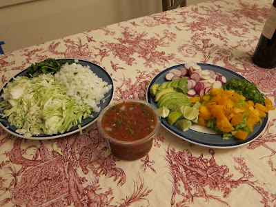 Sure enough I arrived home late Sunday night, hungry and tired, to all the fixings for homemade fish tacos.
